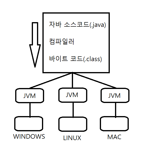 - 자바가 OS에 무관하게 실행될 수 있도록 해준다.
