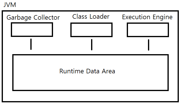 - Garbage Collector / Class Loader / Execution Engine / Runtime Data Area로 나뉨